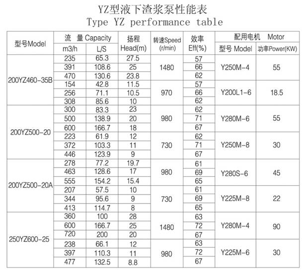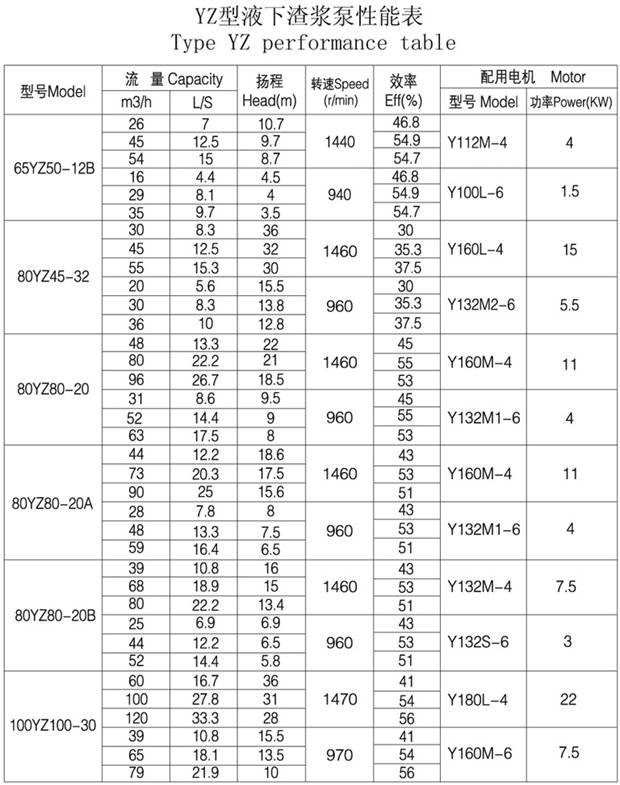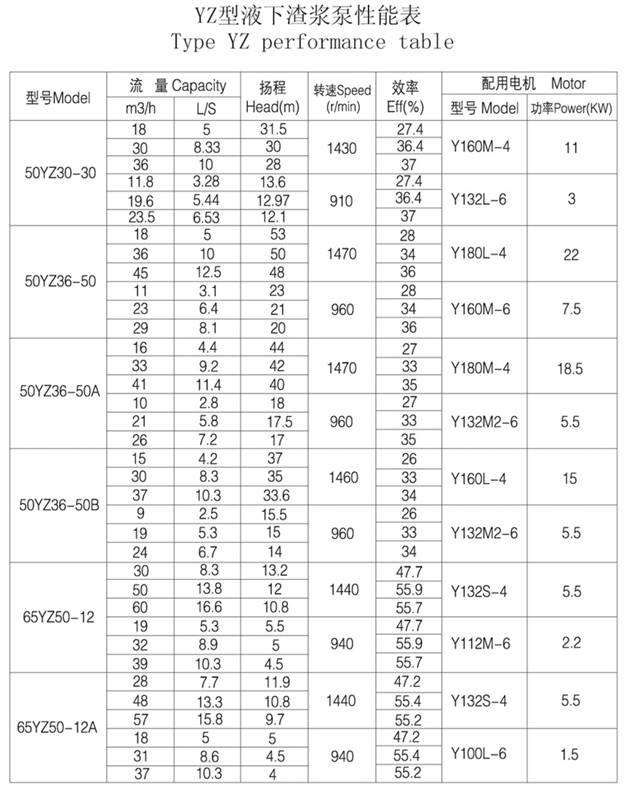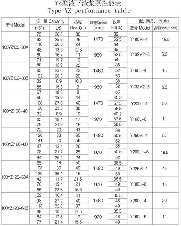 YZ型泵為單級,單吸懸臂式結(jié)構(gòu),用軸承座,支承座,聯(lián)接管連接泵的水力部件,液體由出液管部件排出,泵的葉輪為半開式葉輪,在葉輪葉片進口延伸處設有攪拌葉片,該泵主要特點是在液下部位的泵軸,有足夠的剛度,葉輪,泵殼之間不設軸承,不采用軸封,可以輸送含有較大濃度固定顆粒的介質(zhì)。泵插入液下的長度在800-2000之間,如果需要可以配帶吸入管。軸封采用較大泵插入液體中運行,不設軸封,傳動由立式電動機安裝在電機支承和支承座上,用聯(lián)軸器與泵相連。